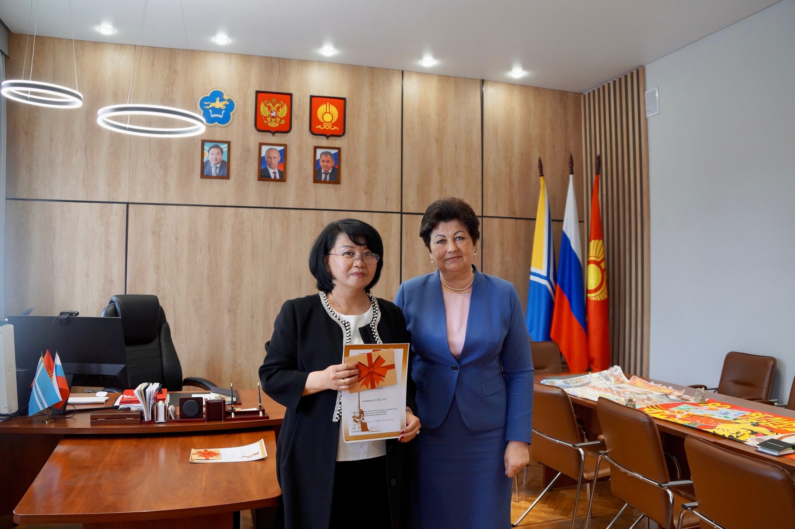 Глава города Ирина Казанцева наградила победителей городского конкурса стенгазет среди школ Кызыла и вручила подарочные сертификаты.