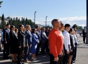 Депутаты Хурала представителей города Кызыла приняли участие в церемонии поднятия государственных флагов Российской Федерации и Республики Тыва, посвящённый Дню государственного флага Российской Федерации.